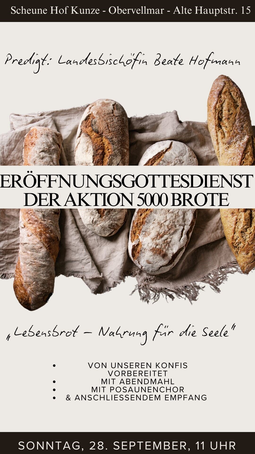 Wir freuen uns, dass der Eröffnungsgottesdient der Aktion 5000 Brote in diesem Jahr mit unserer Bischöfin Beate Hofmann und in unserer Landeskirche stattfinden wird.