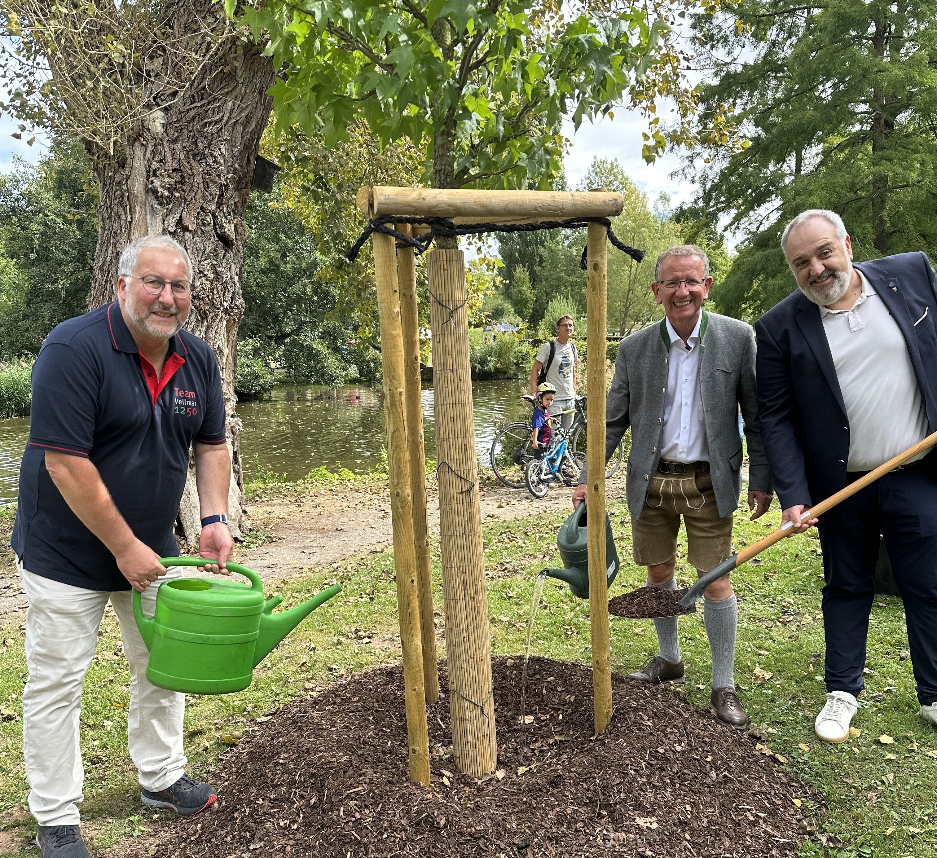 Unter dem Motto „Wurzeln schlagen – Zukunft wachsen lassen“ versammelten sich zahlreiche Gäste im Ahnepark, um den symbolischen Akt des Baum-Setzens mitzuerleben. Bürgermeister Manfred Ludewig und sein österreichischer Amtskollege Andreas Wimmreuter griffen gemeinsam symbolisch zum Spaten. Anschließend wurde die Pflanze angegossen, um ihr einen guten Start ins Leben zu geben.
