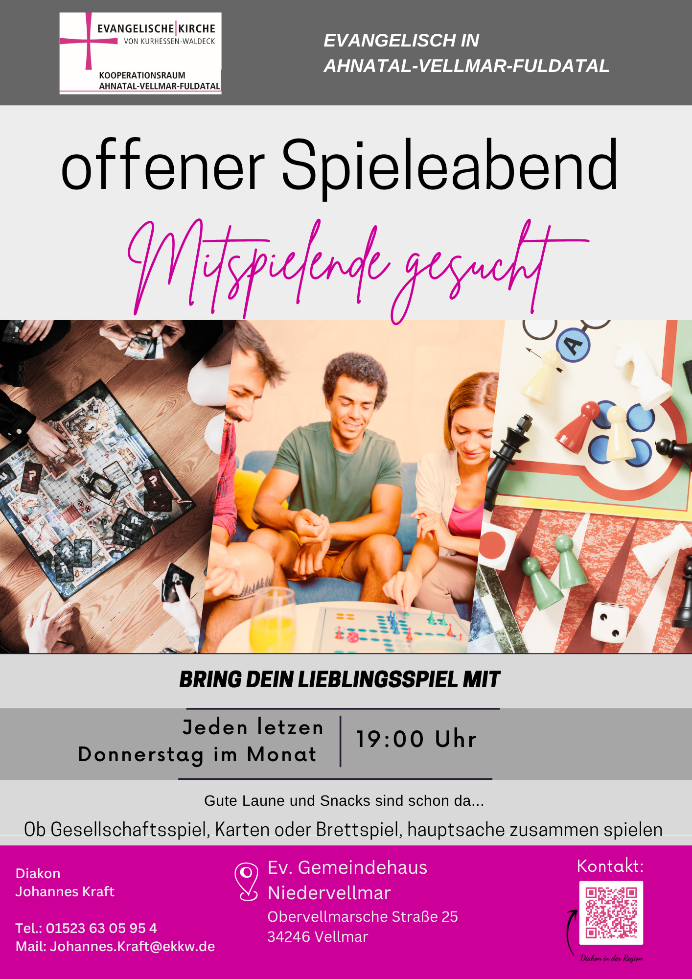 Jeden letzten Donnerstag im Monat im Ev. Gemeindehaus Niedervellmar (Obervellmarsche Str. 25, 34246 Vellmar)